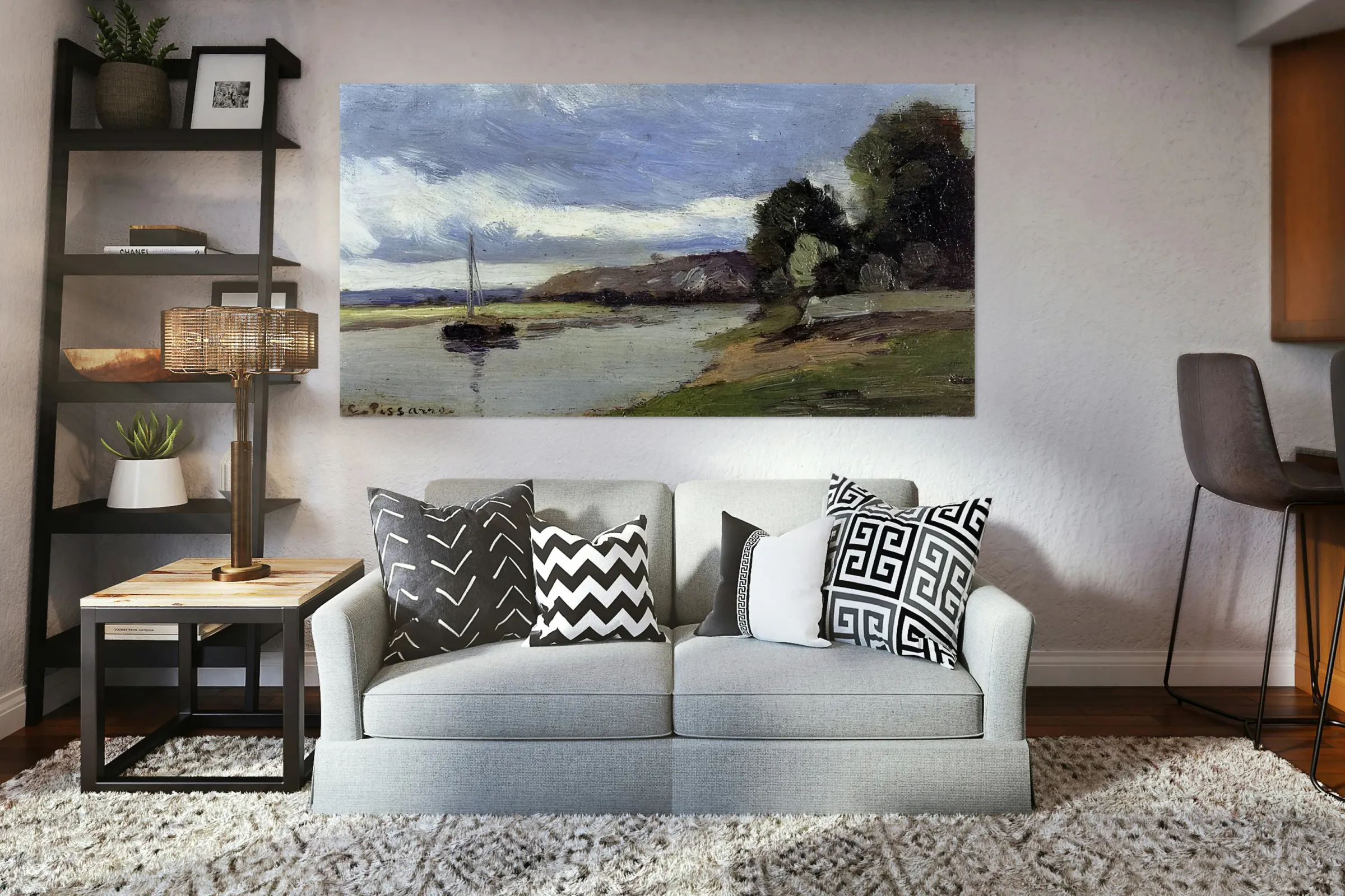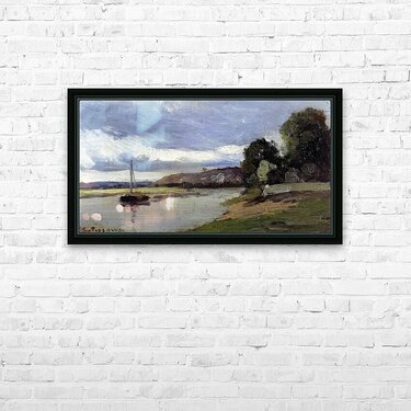Banks of a River with Barge 1864 Camille Piss  Wood print